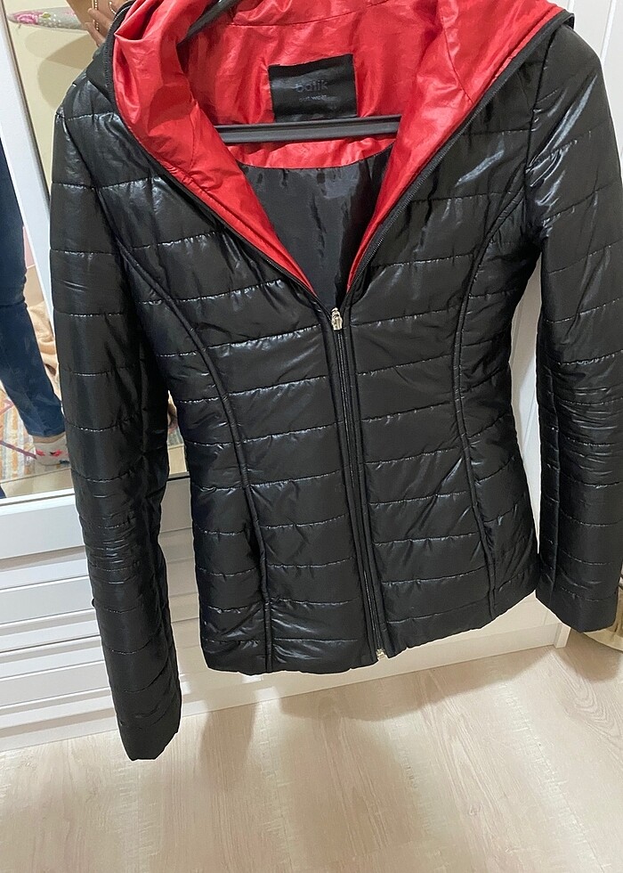 Kapüşonu kırmızı siyah şişme mont batik marka 36 beden hiçbir sorunu yok yeni gibi