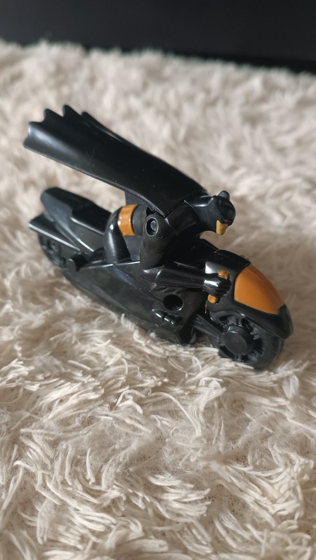 McDonald's DC Comics koleksiyonundan, Batman Batcycle figürü. Pelerinine bastırınca arka tekerleği dönüyor, düz zeminde hareket ediyor. Göründüğü gibi gelecektir, lütfen inceleyerek alım yapınız. #batman #batmobile #dc #dccomics #batcycle #motosiklet #yarasa #yarasaadam #batmanbatcycle #oyuncak