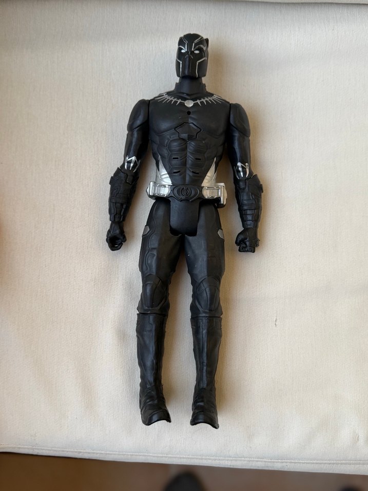#batman Siyah Black Panther aksiyon figürü, detaylı zırh ve ince gümüş süslemelere sahiptir. Koleksiyon için uygundur.