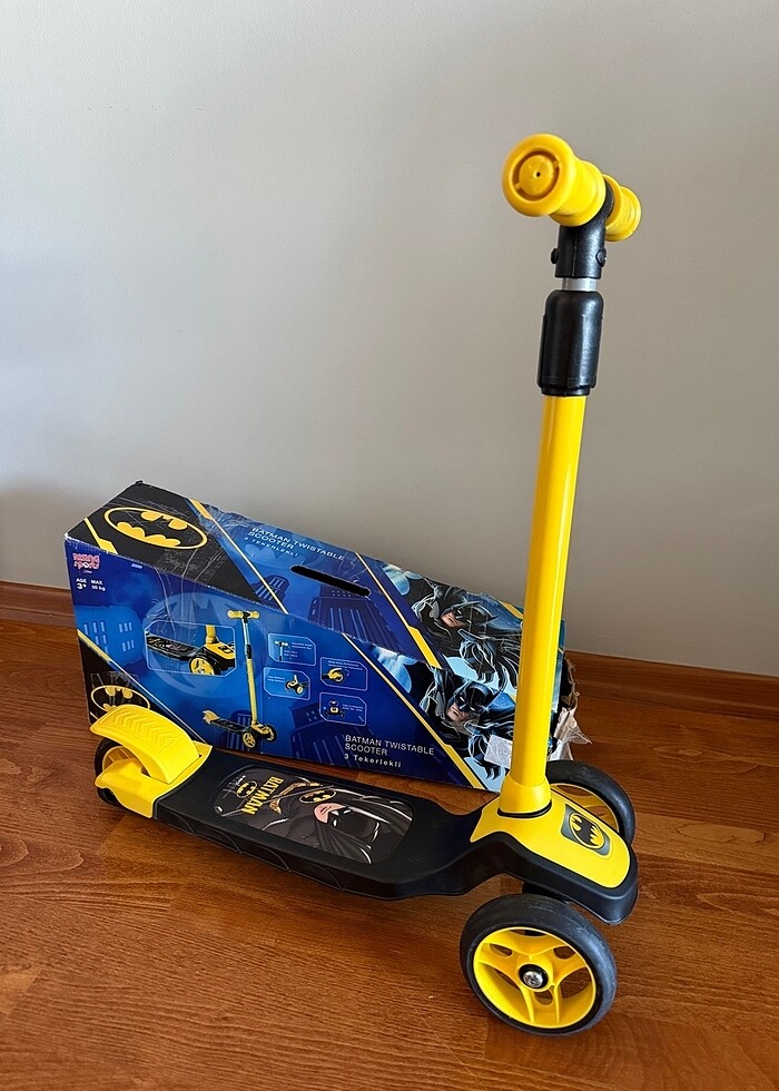 Göründüğü gibi, sadece kutusu hasarlı , 3 tekerli , boy ayarlı kutusuyla gönderim yapılacak #batman #marvel #scooter