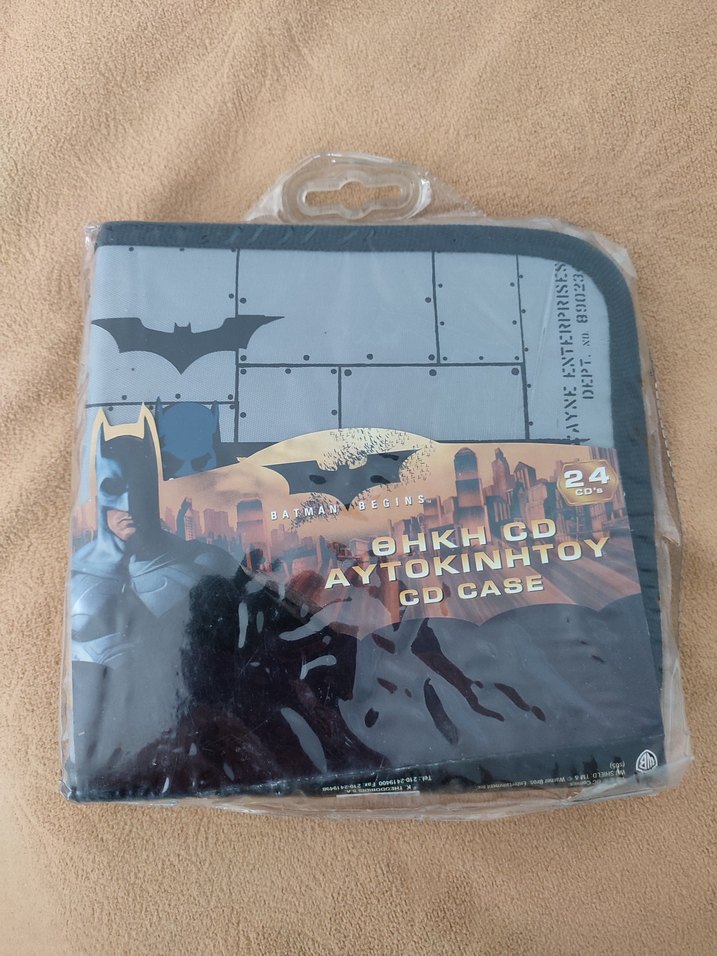 Batman temalı, 24 CD kapasiteli kutu. Şehir manzaralı ve yarasa simgeli, oyun ve müzik CD'leri için uygun. ambalajında açıkmamış ürün