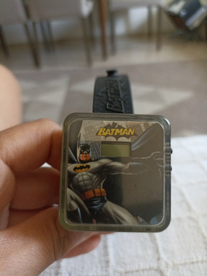 Koyu gri renkte, Batman figürlü dijital ekrana sahip akıllı saat. Siyah dokulu kayış ile tamamlanmıştır. Marka temsilidir.