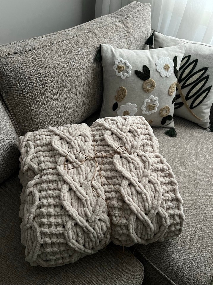 Yumuşak dokulu, kalp model gri bebek ve tv battaniyesi. Sıcaklık ve konfor sağlar. Çift taraflı kullanılabilir. 140cm en 180cm boyu var. Kendi el emeğim.