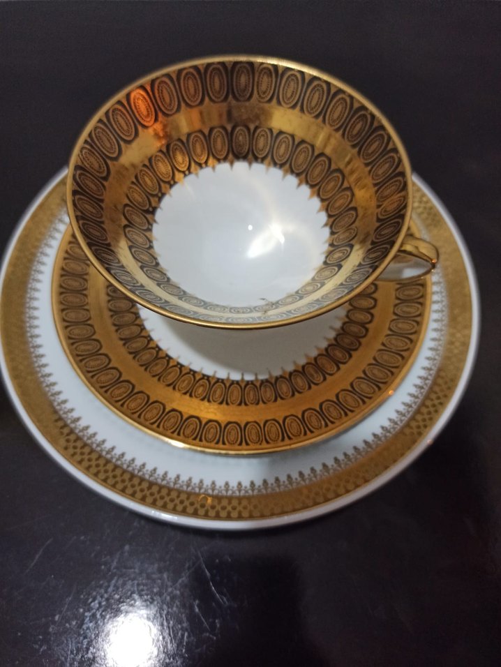 Bavariya,Altın Renkli Dekoratif Cay Fincani ve Tabak Seti