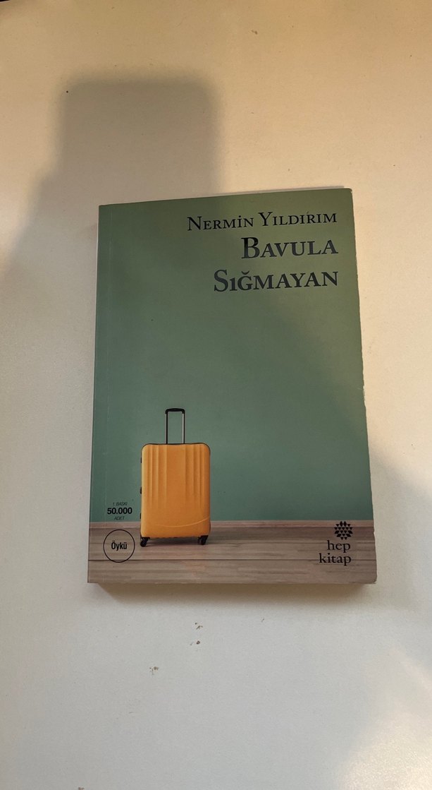 Nermin Yıldırım'ın "Bavula Sığmayan" adlı romanı, sarı bir bavulun ahşap zemin üzerinde olduğu yeşil kapak tasarımına sahiptir.