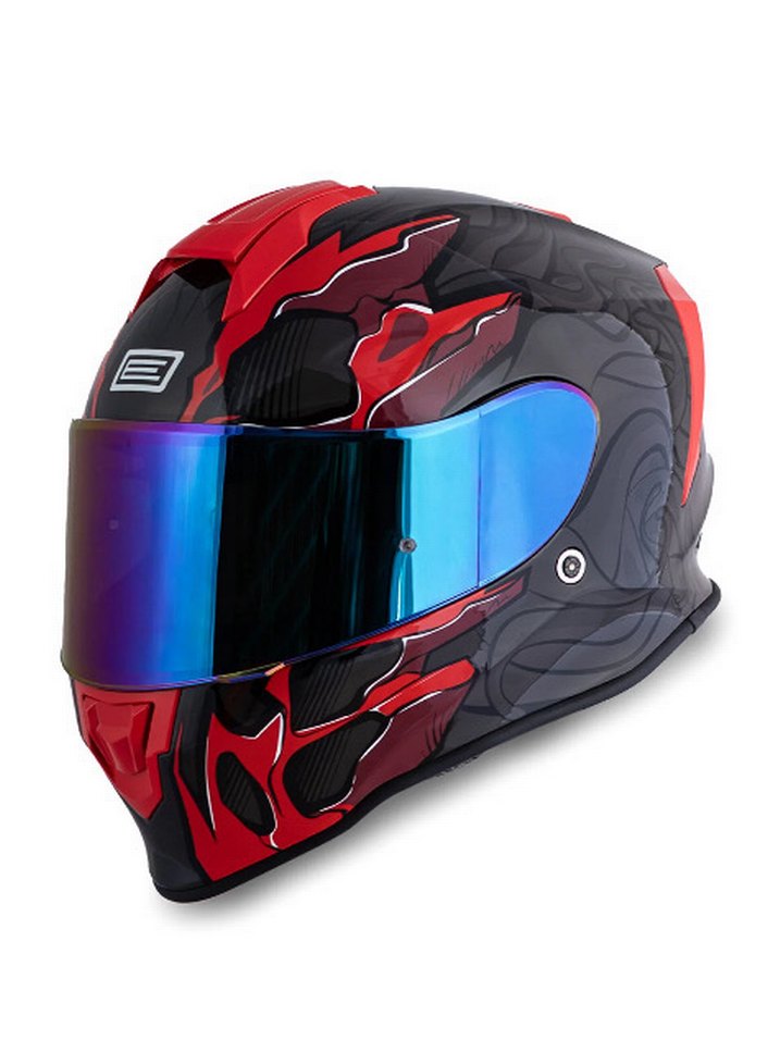 M beden #motorsiklet #kask Cesur ve avangart tarzda, kırmızı renkli desenli metal kask. Yansıtıcı mavi vizöre ve tokalı kayışa sahiptir. ️herhangi bir deforme yoktur kullanılmadı #iadeyok