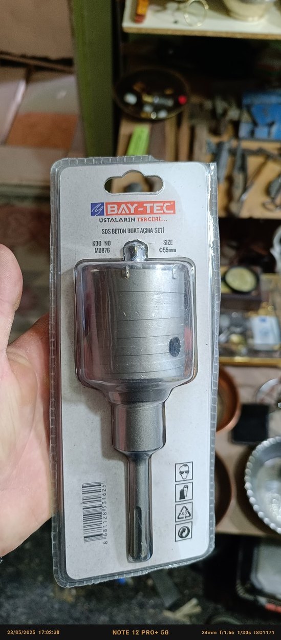 BAY-TEC markalı, 65mm çapında SDS beton delme ucu. Beton delme işlemleri için uygundur. Bej ve gri renklerde.