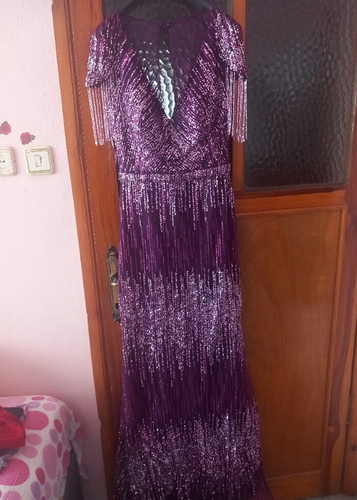 Bayan abiye ürün fotoğrafta göründüğü gibidir iade kabul etmiyorum boy uzunluğu 160 santimdir 36 bedendir