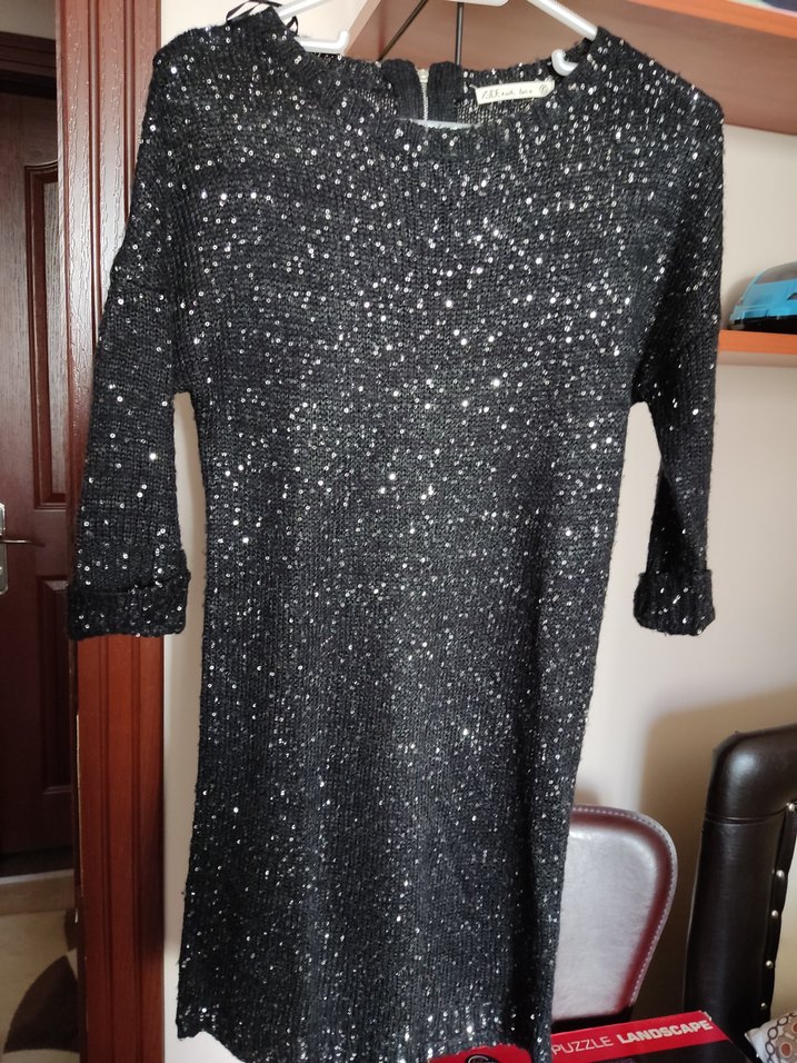 Bayan abiye pullu elbise .