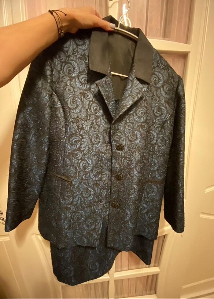 Ürün sadece bir kaç defa giyildi özel bir gün için alınmıştı hiçbir deformasyonu yoktur. 42 bedene uyumludur etek boyu 70 cm bel 42 cmdir. çok şık siyah saks mavisi kendinden desenli kalın kumaş detaylı astarlı etek ceket takım #takımetekceket #ceket #kadıntakımelbise #kadın