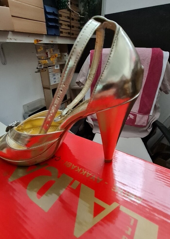 1 kere nisanda giyildi lara marka çok kaliteli altın rengi rugan 37 no ayakkabi
