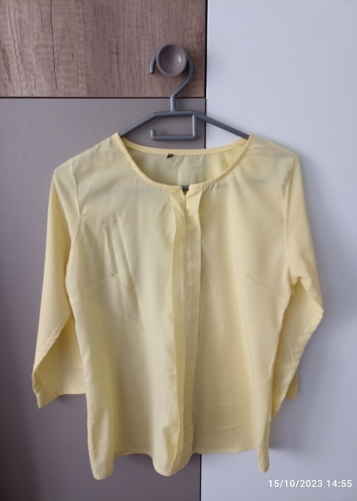 Az giyilmiş civciv sarısı bayan bluz, yırtık vs yok,yazlık,ince ferah bir ürün