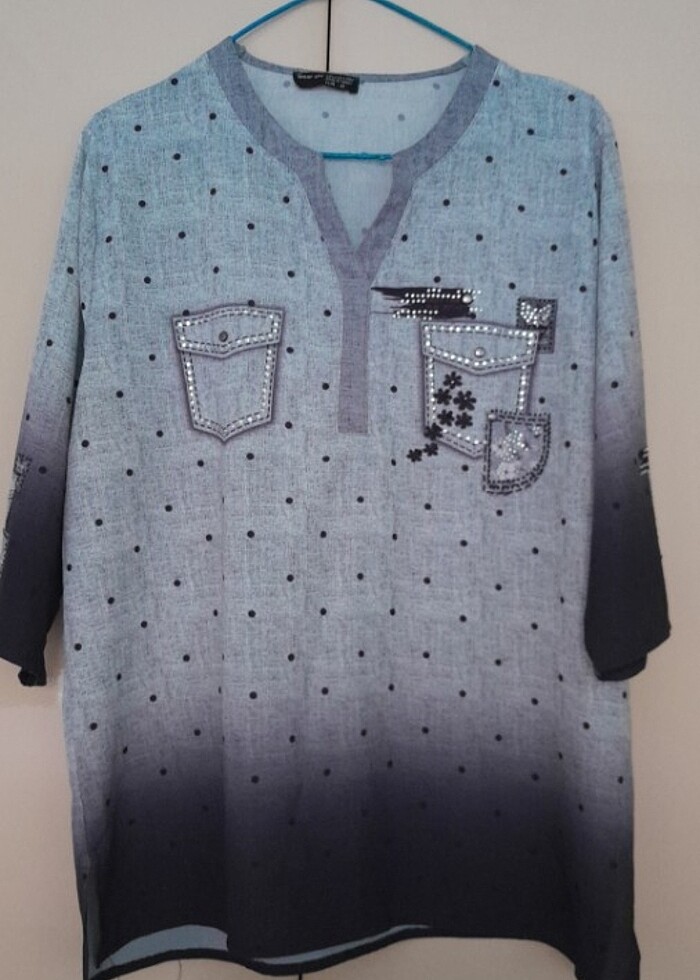 Dirsek kol gri renk pul işlemeli bluz boy 70 cm en 55 cm