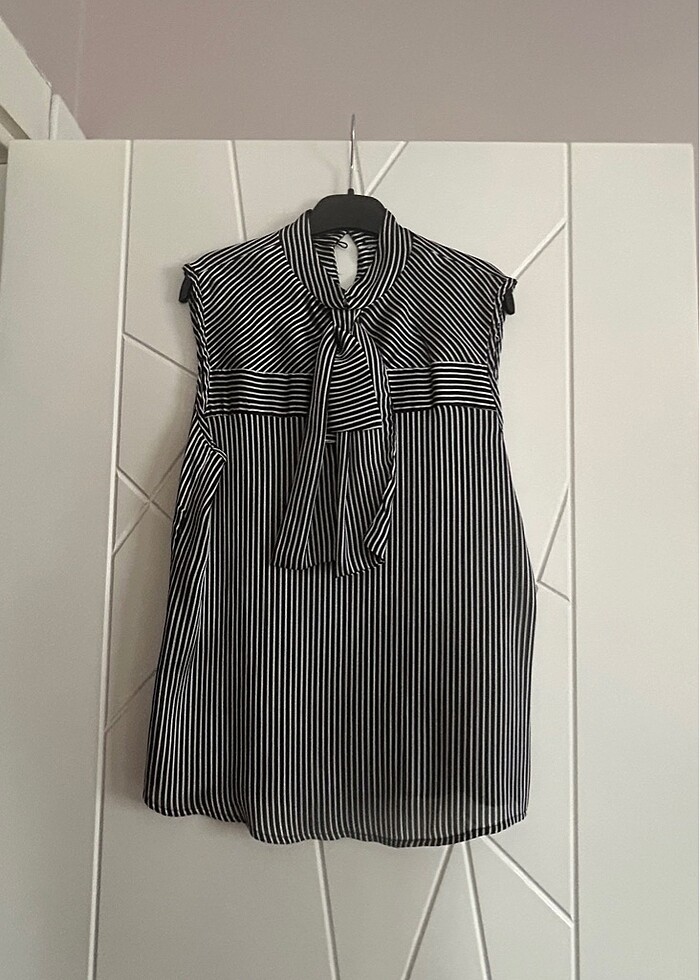 Bayan çizgili bluz, 40 beden, hiç giyilmedi, etiketi mevcut değil, uzunluğu 57cm, iki kol arası 43 cm.