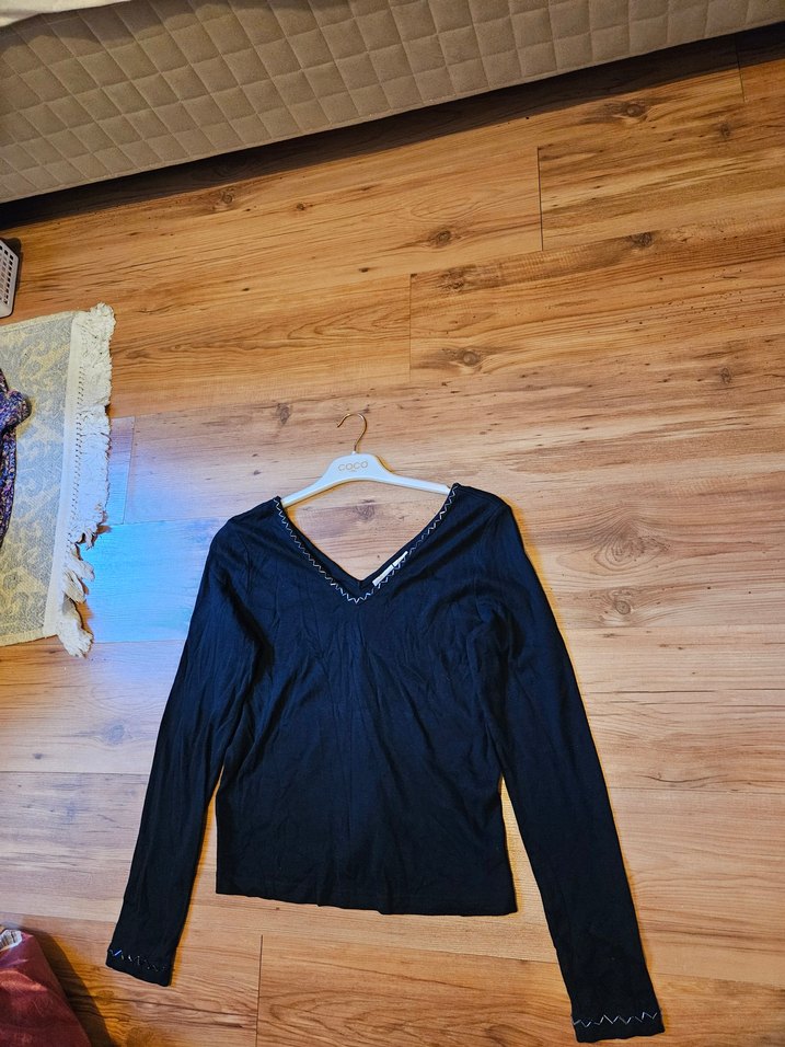 Lacivert, V yaka ve uzun kollu, yumuşak keten kumaştan yapılmış dar kesim bluz. Minimalist ve gotik tarzda, günlük kullanıma uygun. Boy:56 cm,Koltuk altindan en esneyince:60 cm.