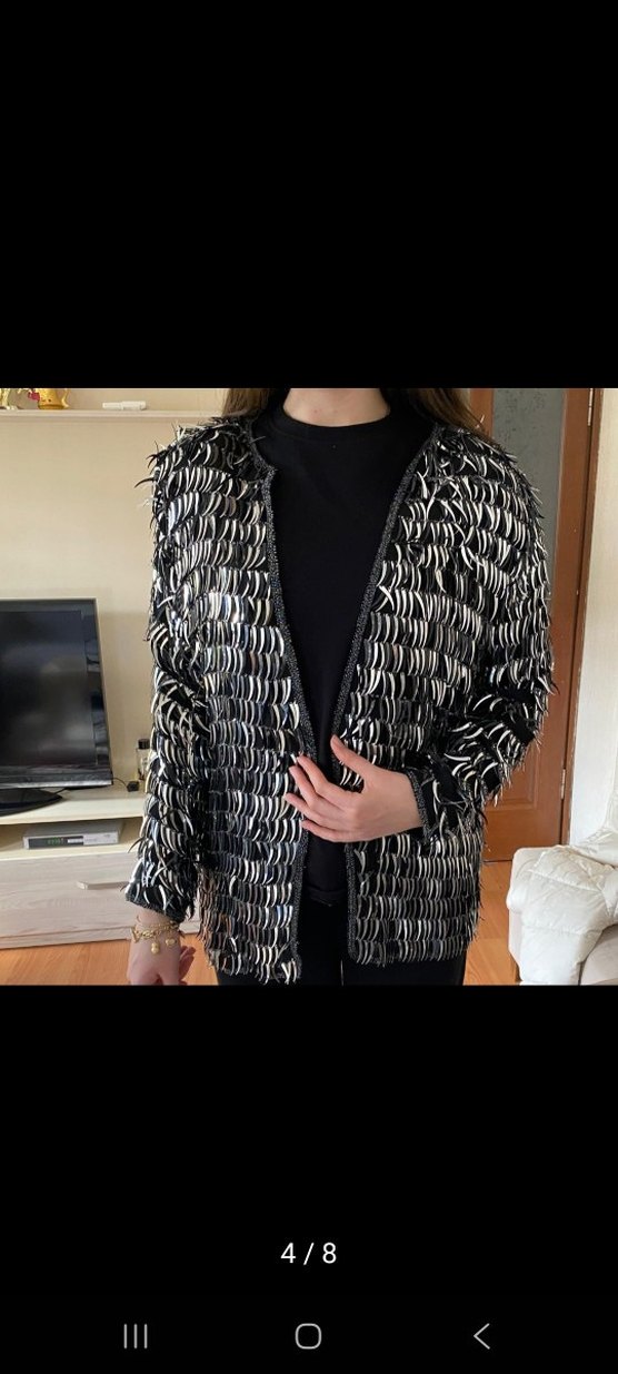 pullu işlemeli cok şık bir ceket iki kol arasi 58cm uzunluk 70cm kol uzunluk 57cm