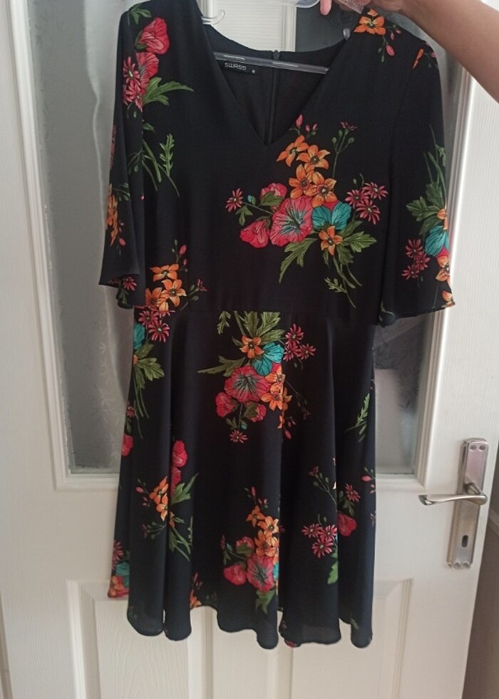 Bayan çiçekli elbise çok şık ve tarz bir elbise M beden için uygundur. Kızımı 1 defa giydi. Hiçbir sorunu yoktur. Butik ürünüdür. Marka temsilidir.