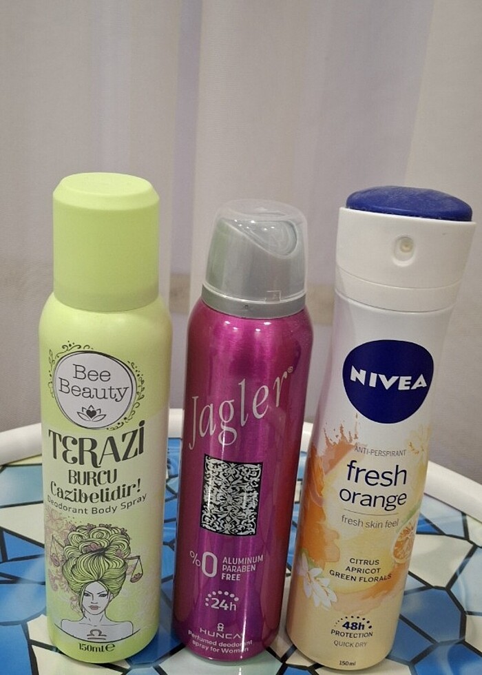 Bayan deodorant cesitleri (Hepsi bir kaç kez kullanildi) 3 lu fiyat yazdim