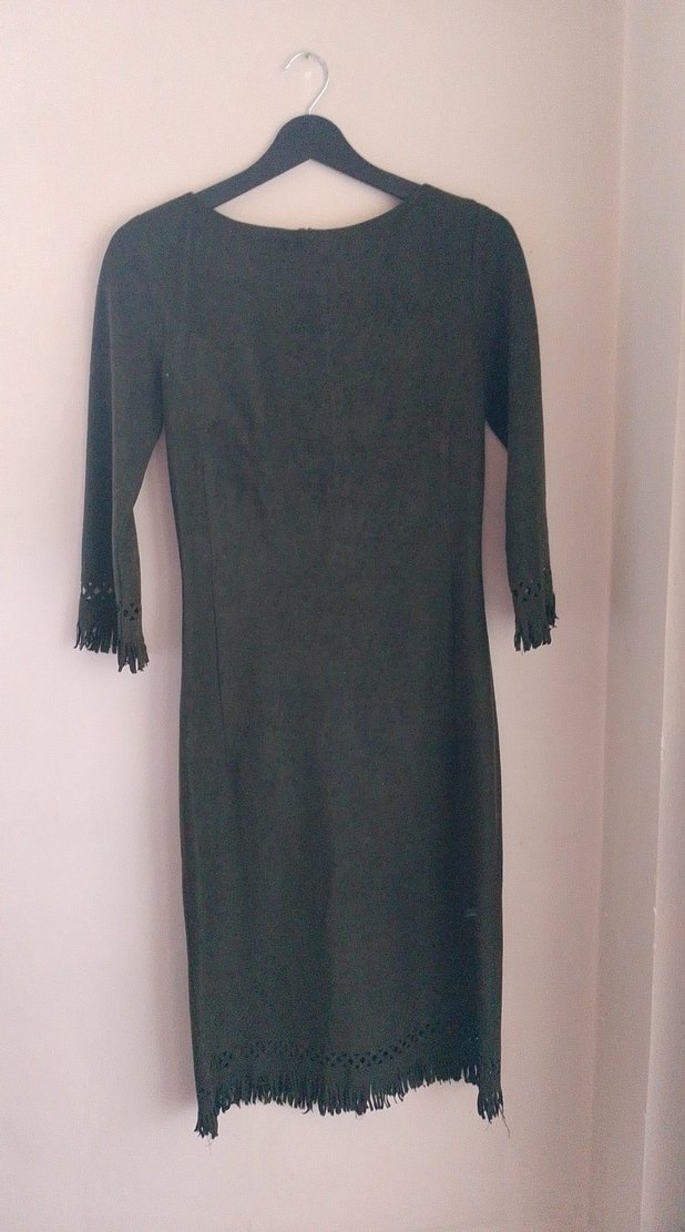 kapri kol, güderi kumaş, diz altı elbise
