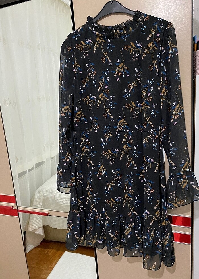 Sadece 1 kere giyildi 42 beden çiçek desenli boyu 91 cm içi astarlı kolları tül model