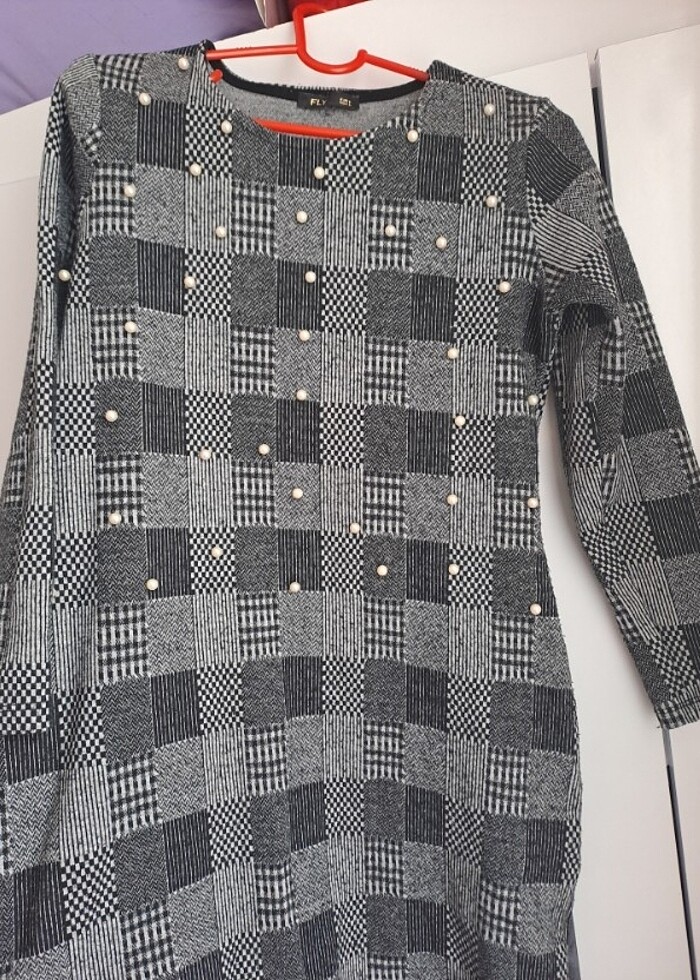 İncili kışlık elbise diz boyunda