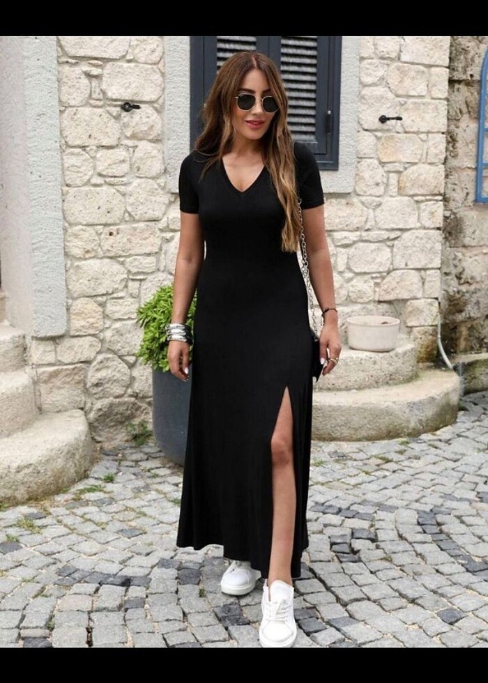 V yaka yırtmaç detay elbise Sm Sm 2xl3xl 2xl3xl