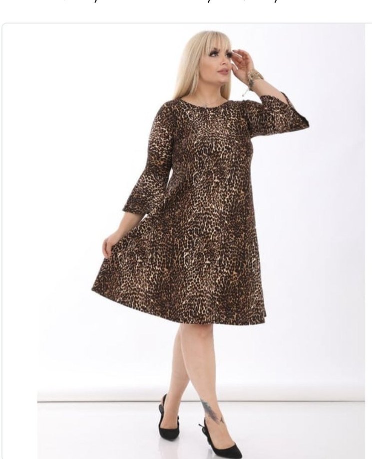 Kahverengi leopar desenli mini elbise, bol kesim, uzun kollu ve yuvarlak yaka. Kürklü detaylar ve parlak yüzeyle modern ve göz alıcı bir tarz sunar. Rahat kullanıma uygun.