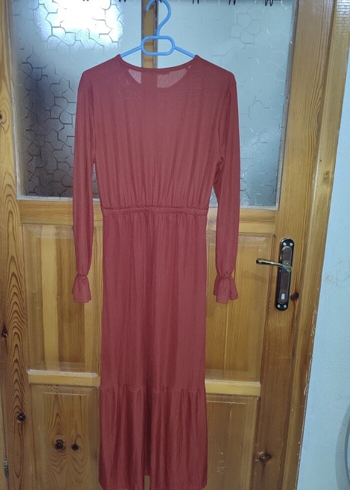 Mira kumaş beli lastikli turuncu renk s m beden zayıf olanlara daha güzel olacağını düşünüyorum hiç giyememdim 131 cm fln uzunluğu