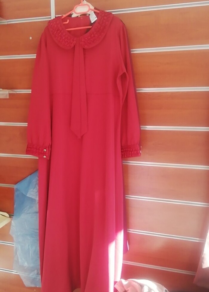 Bayan elbisesi bir defa giyildi. 4numara 52 beden bordo uzun eteği A kesim