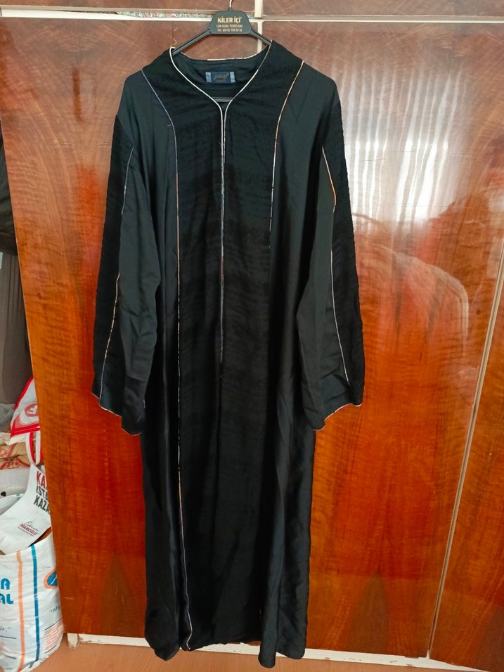 boyu 1.45 omuzdan yaka 15 cm kol boyu omuzdan 62 cm iki göğüs arası 62 cm kol genişliği 25 cm önü çıtçıtlıdır