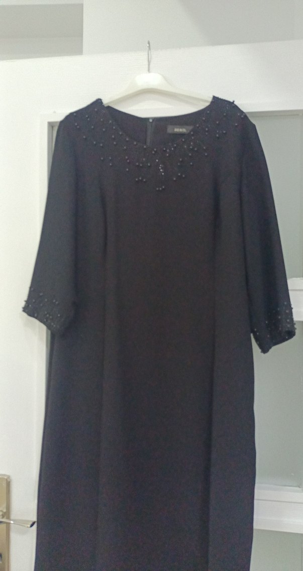 bayan gece düğün özel günlerde giyilebilicek hiç giyilmemiş belden oturmalı yaka ve kol boncuk detayı vardr midi boy