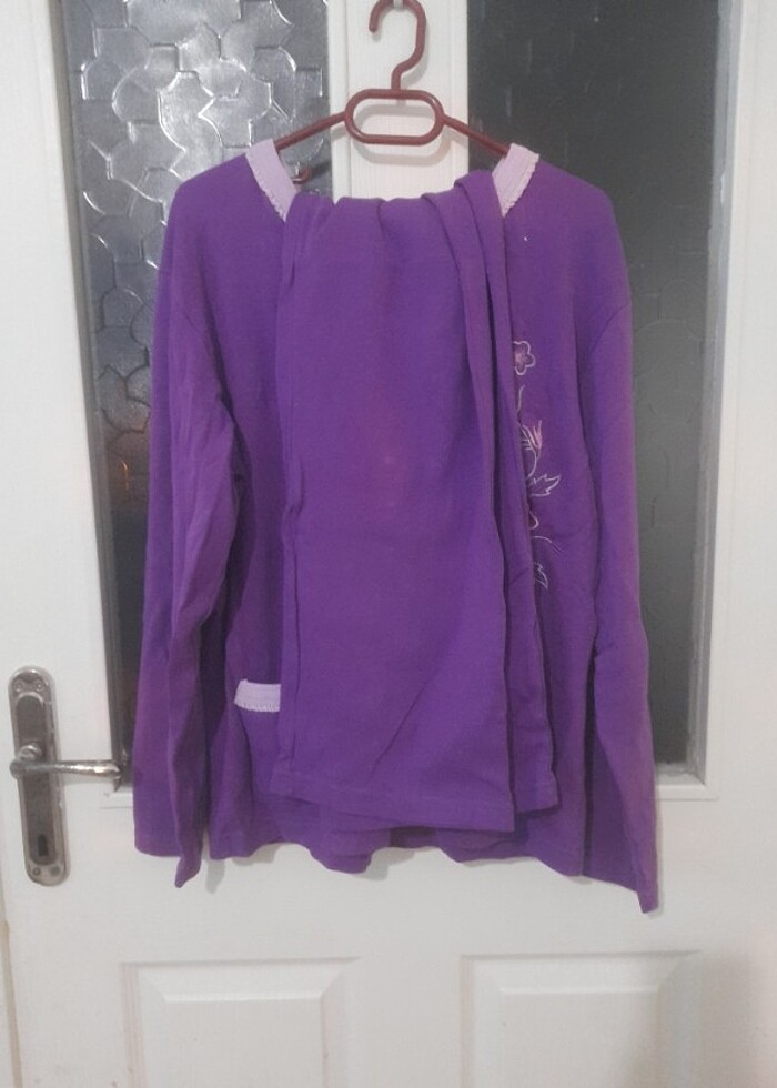 Hiçbir sorunu yok. önden düğmeli. tahmini 3 yada 4 beden ( L / XXL ).Kalın yapısı var. kışlık ürün