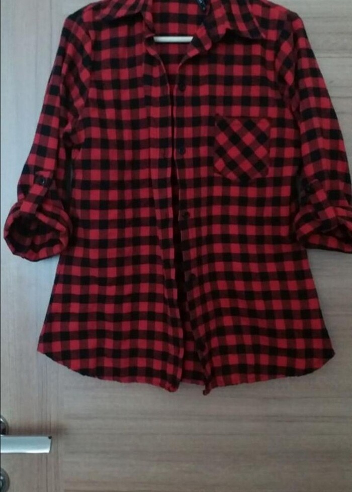 Temiz kullanılmış hiç bir sorunu yok pamuklu yumuşak s,m arası uyumlu resimlerde görüldüğü gibi resimleri inceleyerek alın#bayan#oduncu#gömlek#kırmızı#siyah#pamuklu#gömlek#