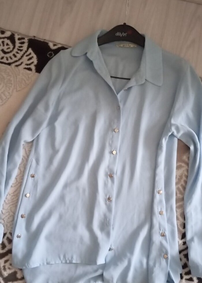 Bayan gömleği bedem M. Biraz kilasik diyebilirim spor değil iyi durumda az giyilmis açık mavi