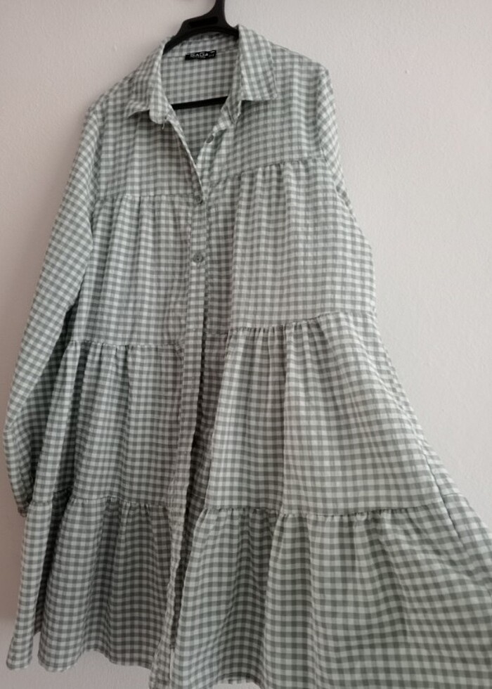 Ürün birkaç kez kullanılmıştır.defosu yoktur. Geniş kesimdir.Hamilelerde rahatlıkla kullanabilir.Efil efil ütü istemeyen bir kumaştır.kollari lastiklidir.