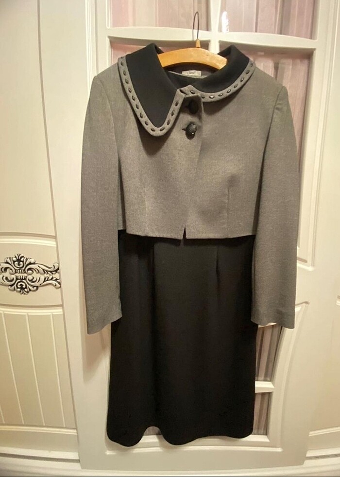 Ürün sadece bir iki defa giyildi özel bir gün için alınmıştı hiçbir deformasyonu yoktur. 44 bedene uyumludur omuzdan etek ucuna 114 cm’dir .çok şık siyah gri detaylı kalın kumaş kısa boy ceketli abiye elbise #kadınelbise #elbise #grielbise #elbisecekettakım #kafdıntakımelbise