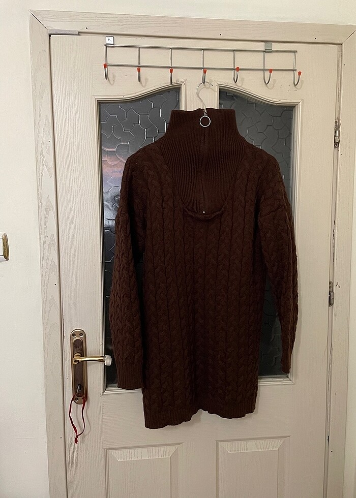 Bayan Kahverengi Triko Kazak SM L Bedene Uygun