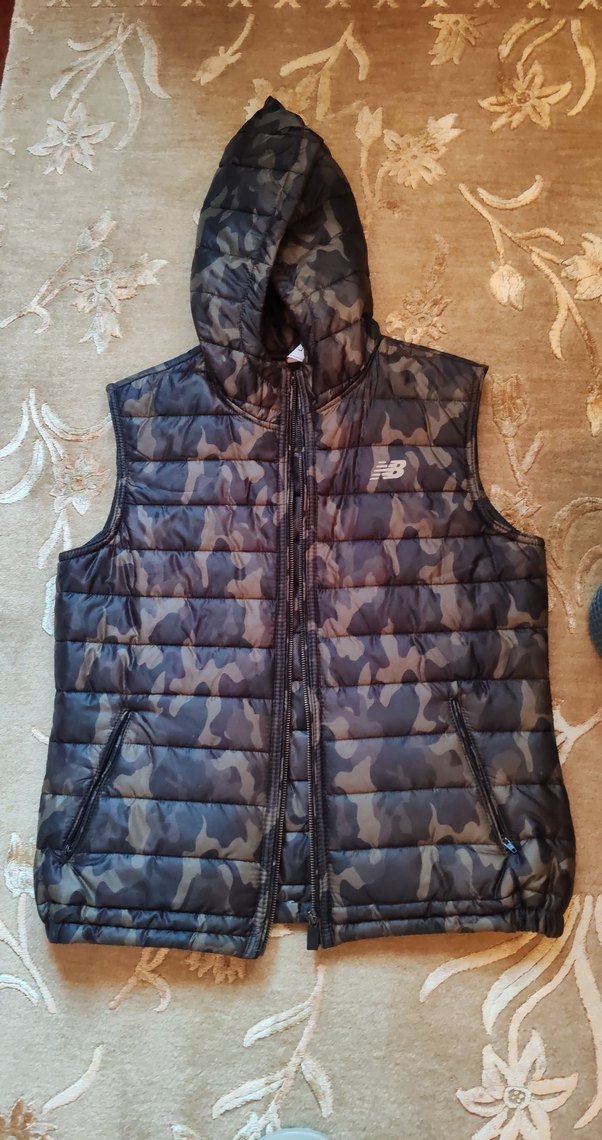 BayanErkekleiçin kapüşonlu, kamuflaj desenli, fermuarlı ve yüksek yakalı dar kesim yelek. Sıcak tutan yumuşak kumaştan üretilmiştir.