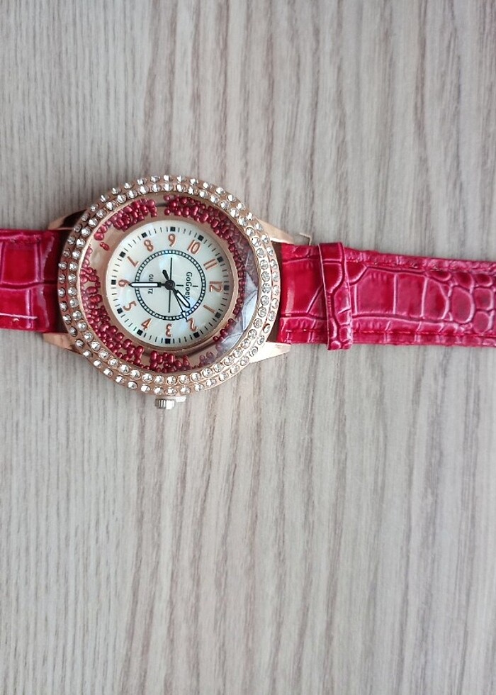 Uygun fiyata çok şık yılan derisi görünümlü kordonu ile içi boncuklu bayan kol saati