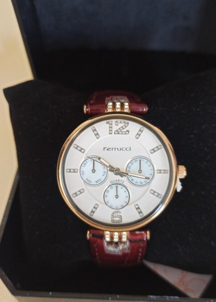 Ferrucci markalı kahverengi deri kordonlu bayan kol saati. Sıfır ürün.