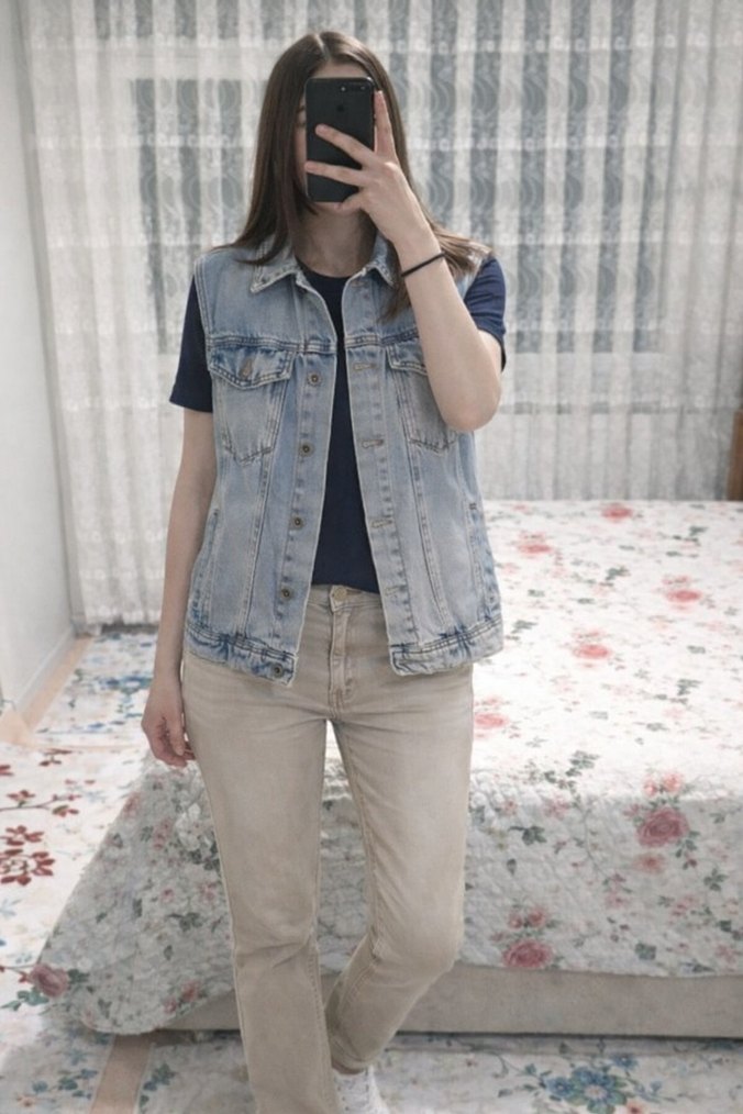 Bayan kolsuz kot çeket.L beden.Temiz kullanıldı.