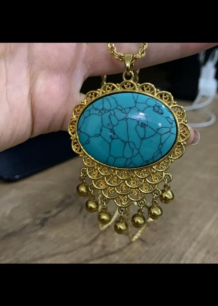 22 ayar altın kaplama Turkuaz (Firuze) taşlı kolye ucu Kolyelerde ilanda satışta