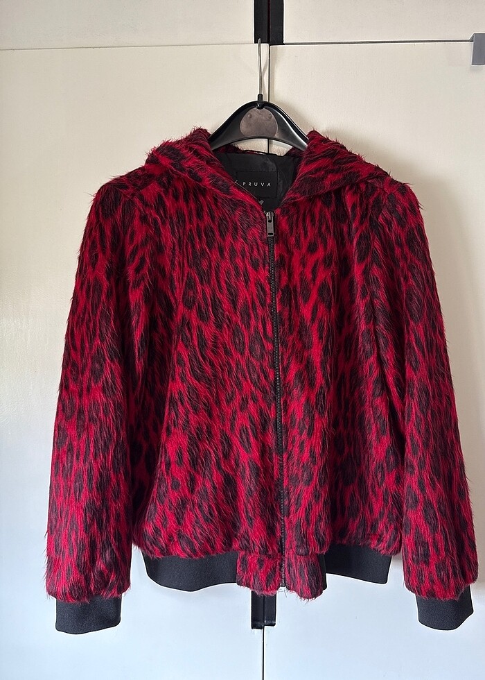 Kırmızı siyah leopar desenli tertemiz mont yumuşak
