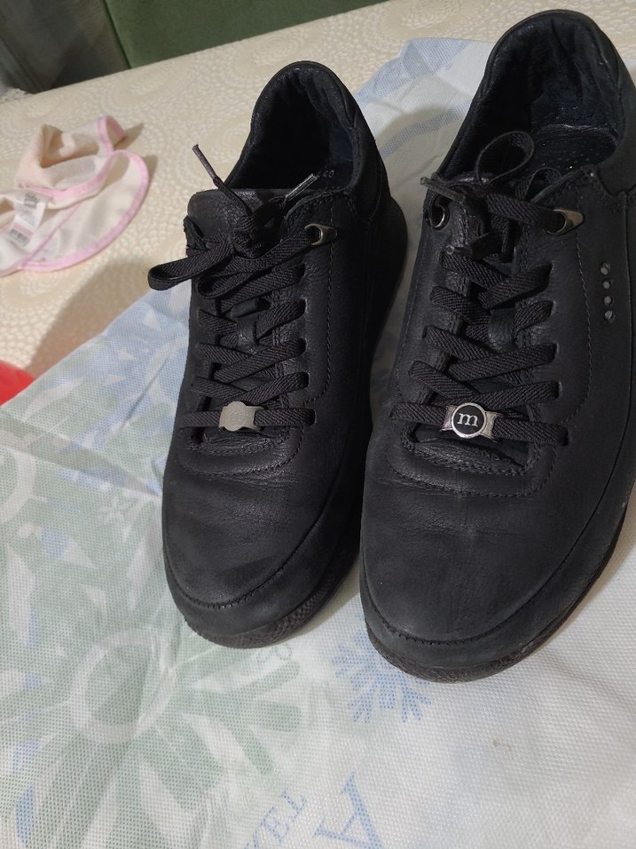 Siyah bayanspor ayakkabısı, koyu renk bağcıklarla sokak stili ve athleisure tarzına uygun. Rahat ve kullanışlı.