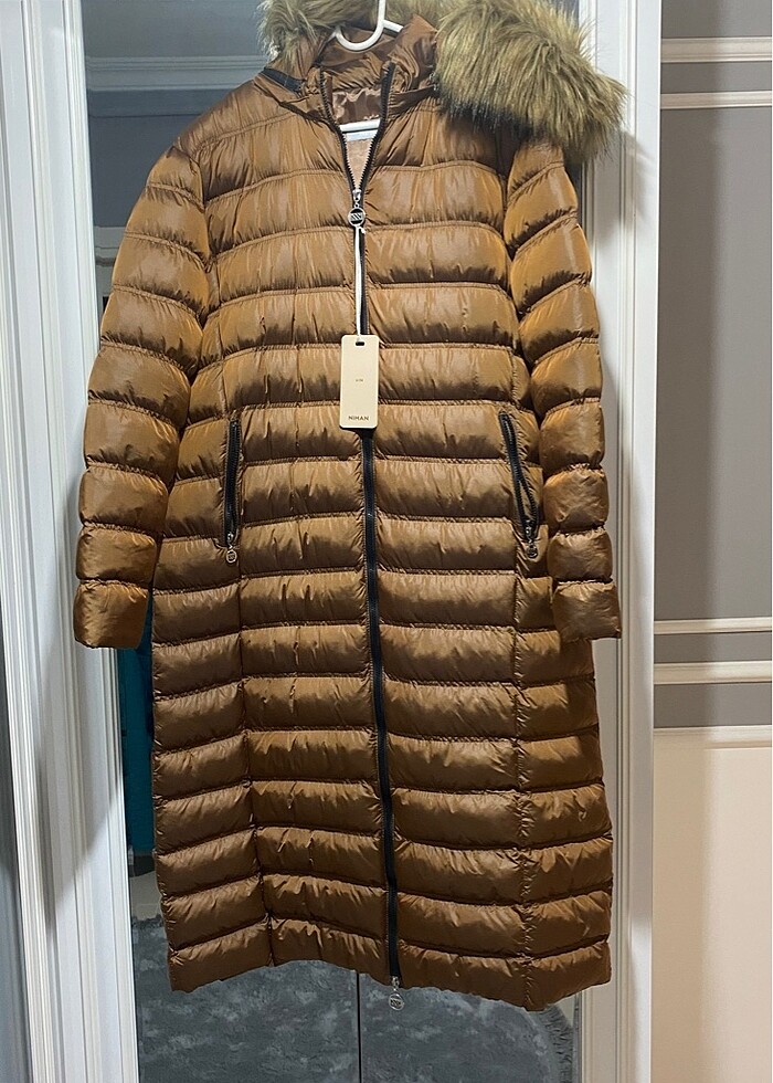Sıfır etiketli taba rengi bayan mont
