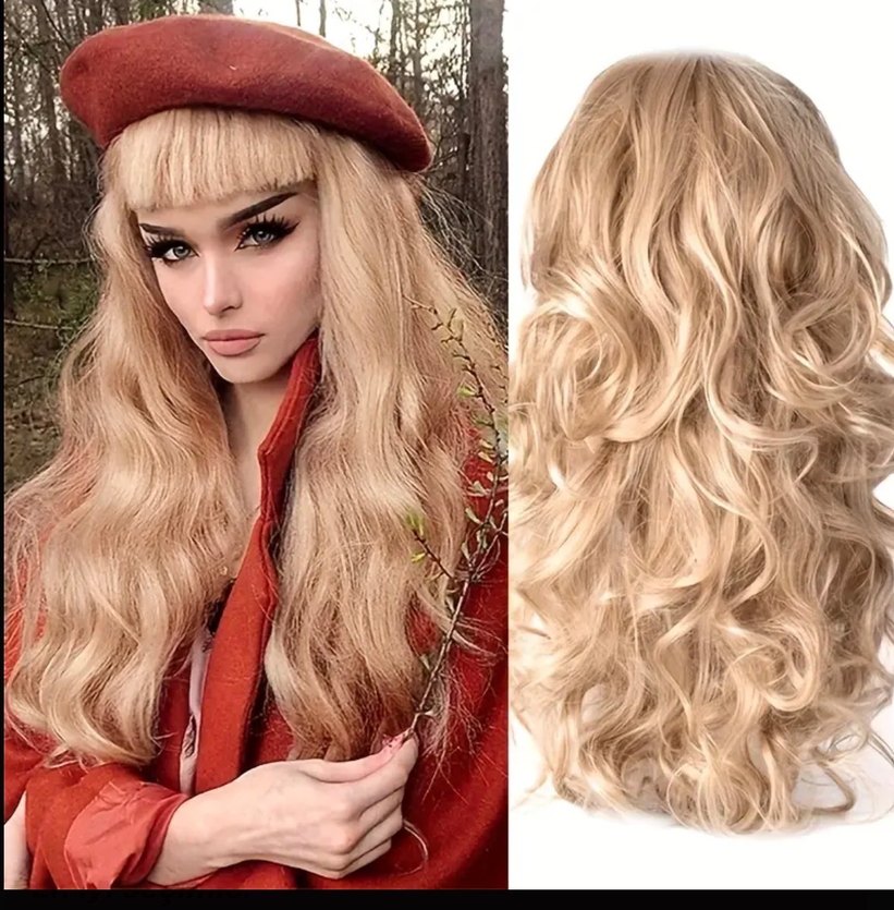 51cm uzunluğunda #parlak #sarı #bayan #peruk Bej renkte, tüylü detaylara sahip, ipeksi dokulu kadın #saç aksesuarı. Bohem ve retro stillerle uyumludur, açık ve doğal renklidir. Herhangi bir deformasyon yoktur kullanılmadı #iadeyok