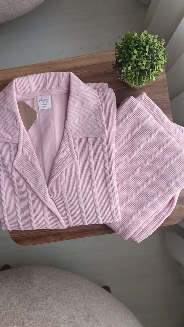 bayan pijama takımı, rahatlık ve şıklık için hafif dokulu desene sahiptir.