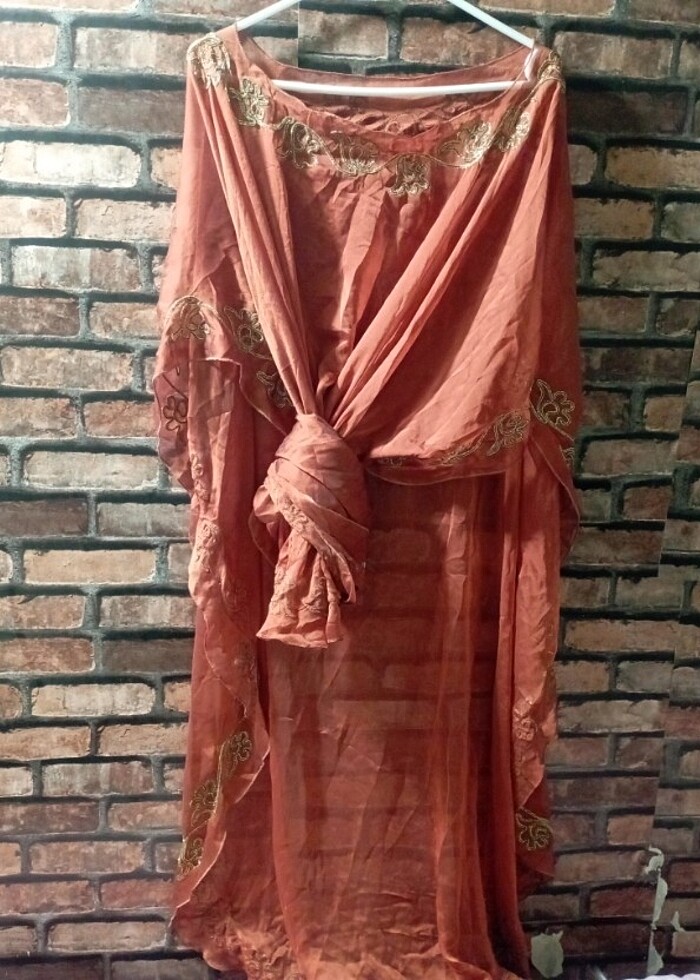 Ürün ikinci el sıfır ayarında uzun kiremit rengi panço