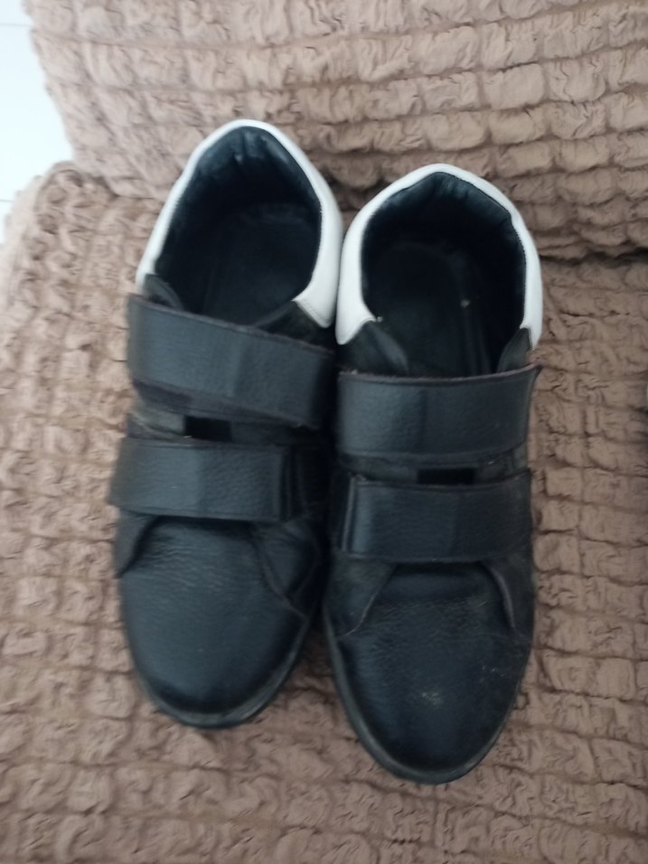 Siyah, cırt cırtlı erkek botları, minimalist tasarım ve sokak stili ile dikkat çekiyor. Düz ve koyu renkli, beyaz detaylı bir model.