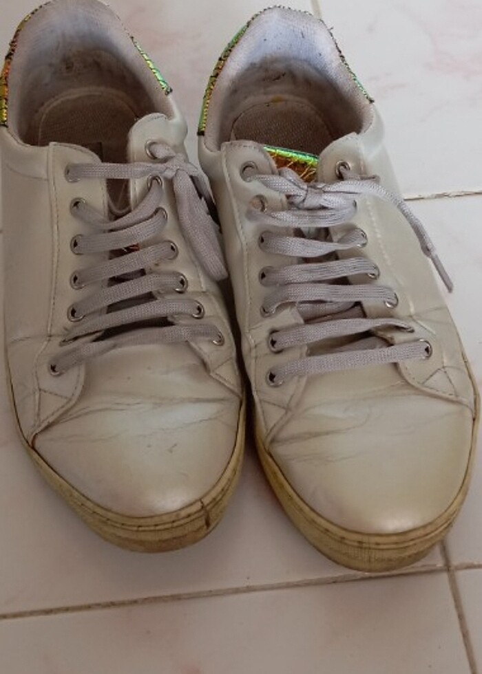 Bayan spor ayakkabisi önünde az bir aşınma var fotoğrafta cektim